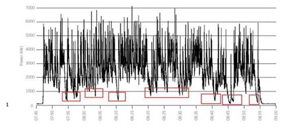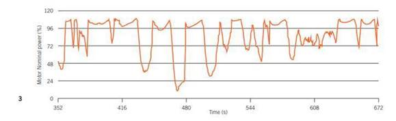 - Average power is low compared to the motor nominal power, with a real motor-service factor limited to 65%.