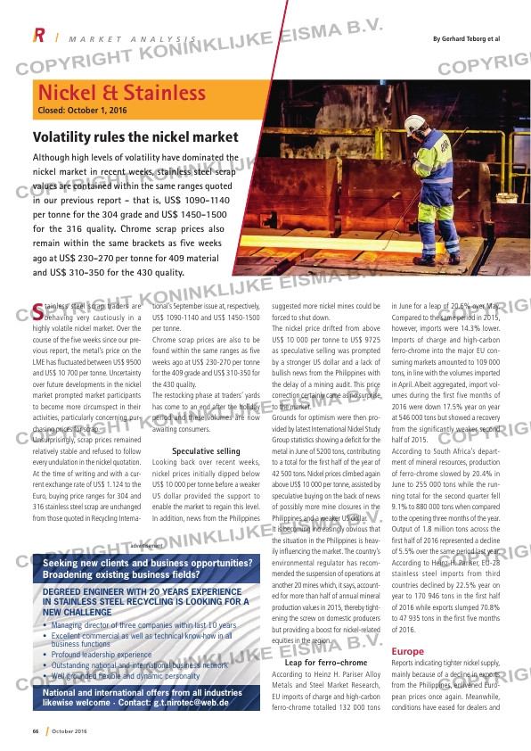 IN STAINLESS STEEL RECYCLING IS LOOKING FOR A
