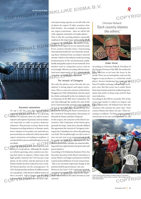 21November 2012 Economic nationalism To cap it all, the crisis has precipitated a renewed economic nationalism. In a growing number of countries, there are calls to restrict imports and exports of primary and secondary raw material...