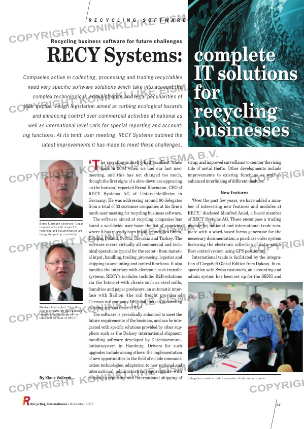 ing functions. At its tenth user meeting, RECY Systems outlined the