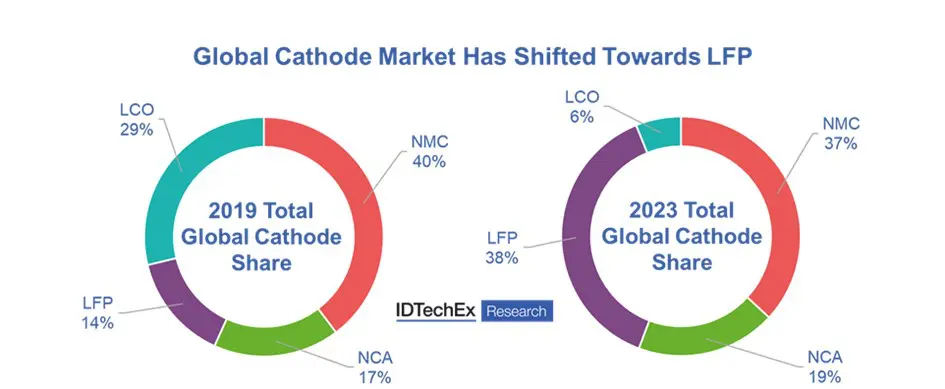 The global LFP cathode market share has increased from 14% in 2019 to 38% in 2023, according to IDTechEx. Carmakers beyond China, including Hyundai, Volkswagen, Renault, Stellantis and Ford, are planning for more LFP.