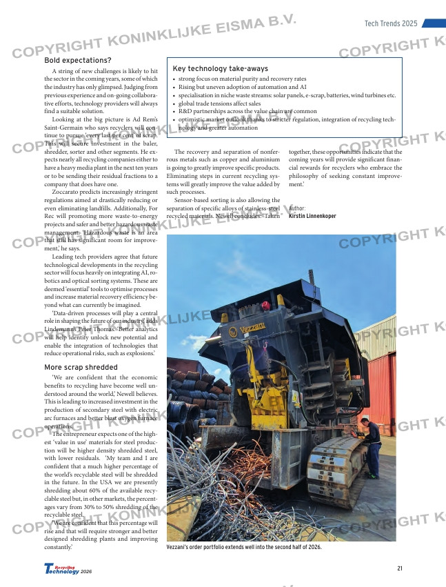 • optimistic market outlook thanks to stricter regulation, integration of recycling tech-