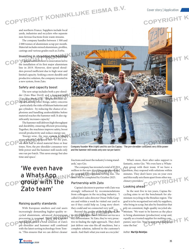Company founder Wim (right) and his son Gio Capiau: ‘The pre-shredder consumes very little power
