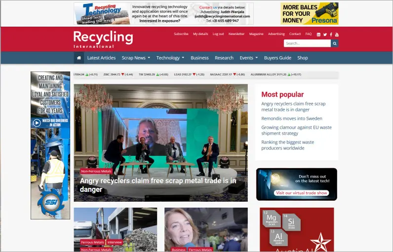 Every day, recyclinginternational.com reflects developments in the global recycling industries, including business news, product news, technology trends, legislation, and research. Furthermore, the website contains a comprehensive database of published articles as well as a conference and trade show calendar and photo galleries.