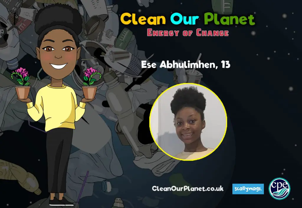 Ese Abhulimhen (13) ‘When I was in Year 4 at primary school, we went on a school trip to the park. During the trip, I saw a bird chewing on plastic and noticed how much plastic and litter there was on the ground. Since then, I have been picking up as much litter and plastic as I can to help stop plastic pollution.’