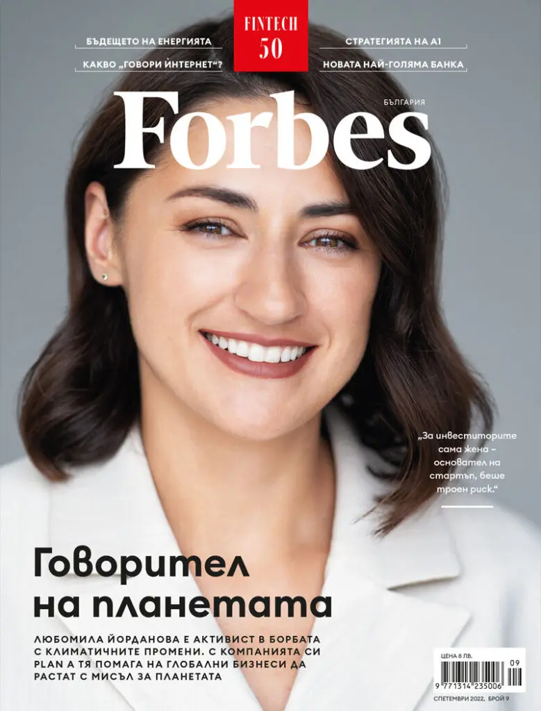 What of Lubomila Jordanova? She’s the ceo of Plan A, a start-up launched in 2017 to help companies map out and realise circular operations. Her face graces the new issue of Forbes magazine in Bulgaria. In the cover story, she details how ‘greentech’ solutions coupled with big data and artificial intelligence systems have the power to create a carbon neutral society without waste.
