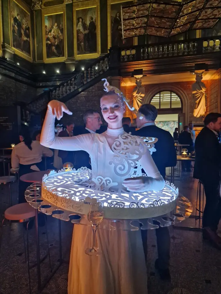 The model quickly changes into another look, showcasing it in the foyer as the session draws to a close. Tinchant says the collection was also featured at the recent QMusic Awards in Rotterdam. ‘Big events are a great way to help the recycling community build engagement with the general public in an aesthetically pleasing and lighthearted way.’