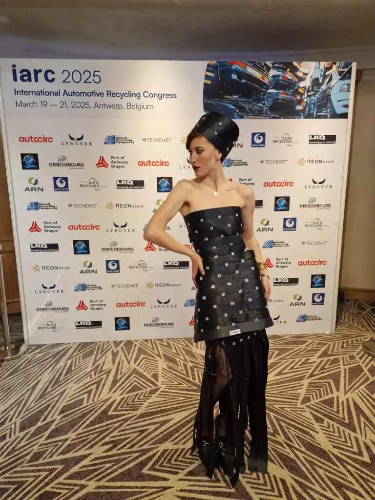 The model ascends the stage amid excited applause – some people stand up. I spot the smirk on Lenaert’s face and the satisfied murmurs of her team alongside me. The mission was clear: demonstrate that car recycling isn’t boring and put a unique twist on materials we usually don’t give a second glance. In this case, it’s mostly car interiors.