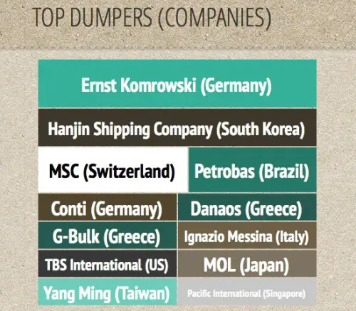 German ship owner Ernst Komrowski tops the list of ′dumpers′ with 14 end-of-life vessels sold to the beaching yards. All of these were formerly part of the Maersk fleet and had been on a long-term charter with the Danish container ship giant which, in contrast to Komrowski, follows a strict recycling policy for its own vessels.