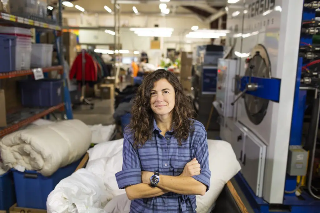Entrepreneur Bassett realised the global fashion industry, which produces over 100 billion garments each year, was seriously flawed. At her company’s headquarters in Hood River, Oregon, her crew cleans, sorts, and repairs clothing to give each garment new life. ‘Renewed apparel’ is sold either back to the brands or partner retailers or through The Renewal Workshop’s online marketplace. Not a single item goes to landfill. ‘Pieces that are too damaged are sent to the local recycling partners in our network,’ Bassett says. She hopes this will boost the US textiles recycling rate, which is currently stuck at roughly 15%. Bassett established her first overseas facility in Amsterdam in 2019.
