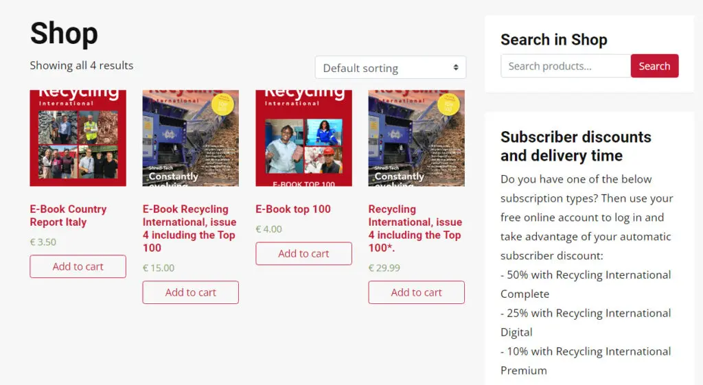 More e-books will be added in the coming weeks covering the latest recycling developments as well as popular articles from previous editions of the magazine. It’s also possible to purchase an individual hard copy of #4, which features the RI Top 100. Future issues will also be available on demand.