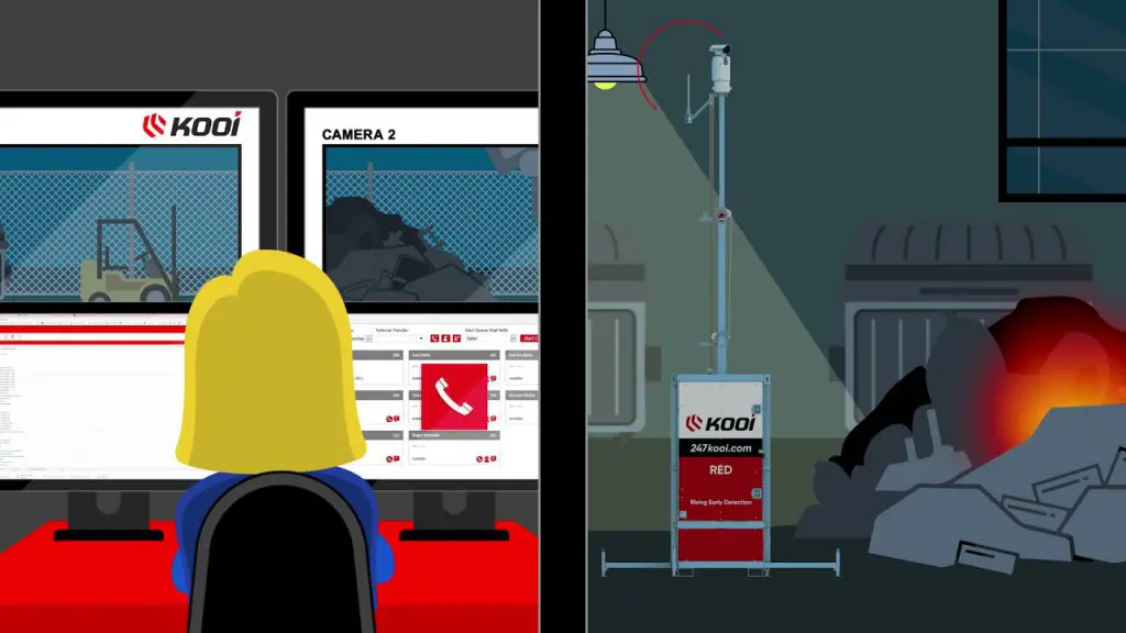 Camera security specialist Kooi and Bollegraaf Recycling Solutions of the Netherlands have come together to tackle the number of scrap fires. Key to their mission is RED, the ‘Rising Early Detection’ system.