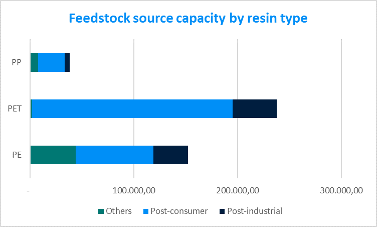 In Africa, 81% of PET, 49% of PE and 67% of PP capacity is from post-consumer feedstock. Food and beverage brands looking to meet their sustainability targets need the highest quality food grade recycled material, suitable for food contact applications. Most PET in Africa is recycled from beverage bottles, although this currently feeds mainly into the domestic fibre industry.