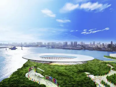 Umi-no-Mori, which literally translates as ′sea forest′, is regarded by Tokyo officials as a highly sustainable venue for the Games. The project will see the complete transformation of a ′mountain of refuse′ spanning 88 hectares, starting with the planting of 480 000 young trees. The stadium will cost an estimated Yen 10.9 billion (just over US$ 1 billion).