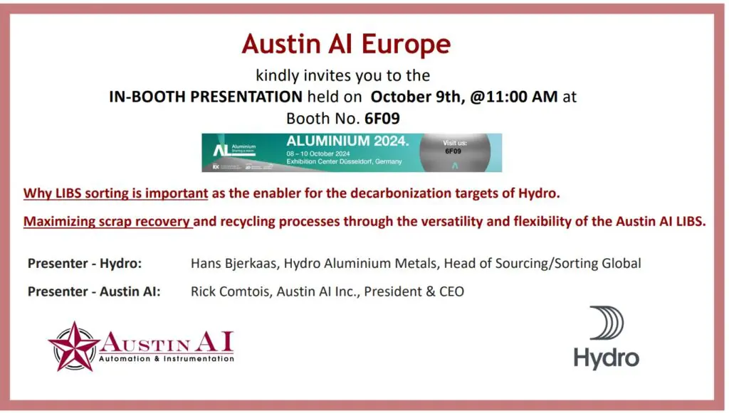 ‘We at Austin AI Europe are the official agent of Austin AI, the inventor and manufacturer of the Austin AI and Hydro Aluminium jointly patented, technology based, LIBS sensor sorter,’ Jeney says.