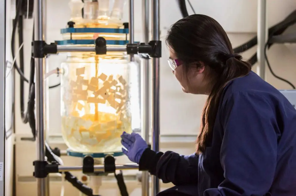Wang started Novoloop straight out of college together with her best friend Jeanny Yao. The young women felt compelled to find a method to treat plastic scrap more efficiently after learning that most material in the US was either incinerated or landfilled. Their ‘breakthrough’ accelerated thermal oxidative decomposition technology harvests carbon-rich feedstock from polyethylene scrap to produce high performance materials that rival virgin plastic. ‘We want to help double the size of the circular economy,’ Wang tells us.