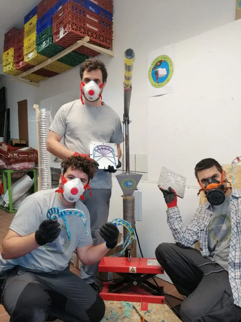 Initially, Precious Plastic La Safor and Precious Plastic Gran Canaria started making and sharing designs for visors that sit on the forehead and hold plastic shields over the wearer’s face. ‘Our workspace in Gran Canaria was requested to provide more than 3 000 visors for the government, hospitals and private sector,’ says Precious Plastics member Rory Dickens, who co-founded UK nonprofit Recycle Rebuild. ‘Our injection moulding machines can manufacture PPE 75 times faster than a 3D printer.’