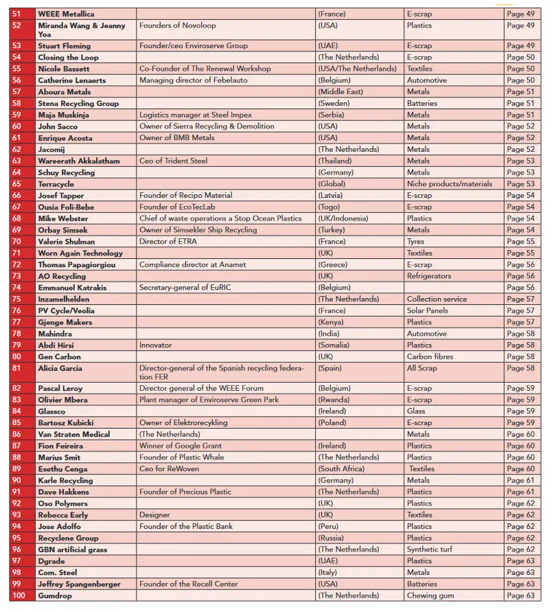 There are many pioneers in the global recycling arena. This is what we need to realise in times as strange as these. We made a ‘TOP 100’ to celebrate the inspiring and determined entrepreneurs, companies and projects that have made our industry what it is today.