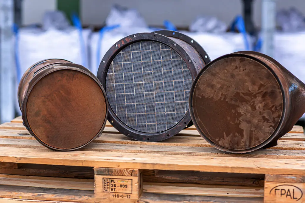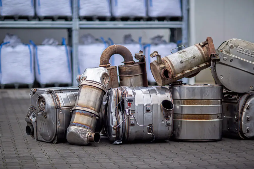 Big bags filled with printed circuit boards line the walls of one hall while another a dedicated team is handling various types of catalytic converters. Some are as big as a fridge, having come from large haulage trucks rather than passenger vehicles.