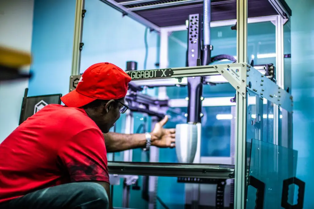 ‘Our operations started in my back yard with two extruders, two 3D printers and a powder grinder, Berendse recalls. ‘Twelve people joined us as part of an educational programme and together we started to collect plastic waste bottles and process them into flakes.’