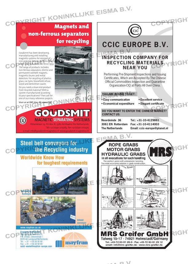...tors, electro and permanent overbelt magnets, magnetic drums and metal detectors. For recycling of plastics, glass, car tyres, household refuse, wood and demolition waste. Do you need a clean end-product from recycled material? With a ...