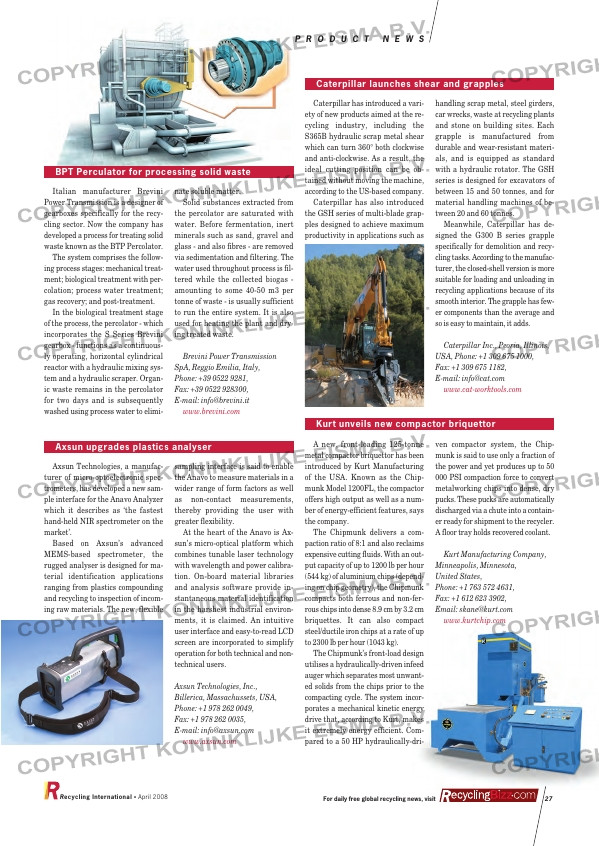 ...blade grap- ples designed to achieve maximum productivity in applications such as handling scrap metal, steel girders, car wrecks, waste at recycling plants and stone on building sites. Each grapple is manufactured from durable and wear-resis...