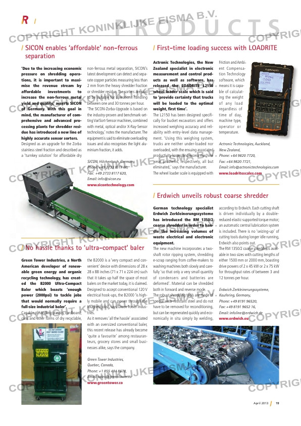 ... (2000psi) to tackle jobs that would normally require a full-size industrial baler’. Capable of handling plastics, cardboard, cans and other forms of dry recyclable, non-ferrous metal separation, SICON’s latest development can detec...