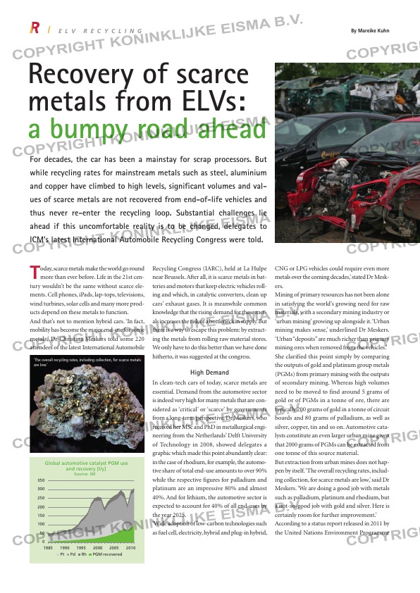 ues of scarce metals are not recovered from end-of-life vehicles and