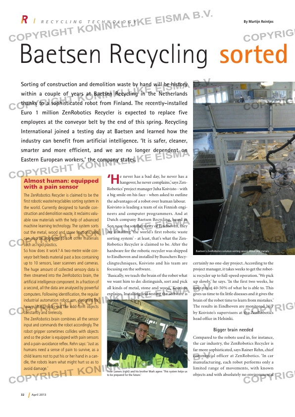 ... at the ZenRobotics head office in Helsinki. Bigger brain needed Compared to the robots used in, for instance, the car industry, the ZenRobotics Recycler is far more sophisticated, says Rainer Rehn, chief commercial officer at ZenRobo...