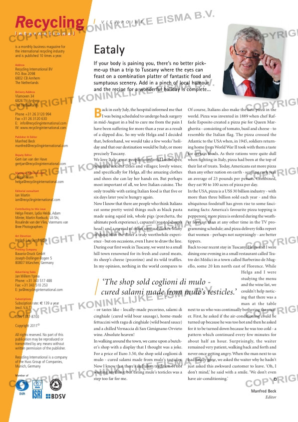 Eatalyis a month ly busi ness mag a zine for the inter na tion al recy cling indus try
