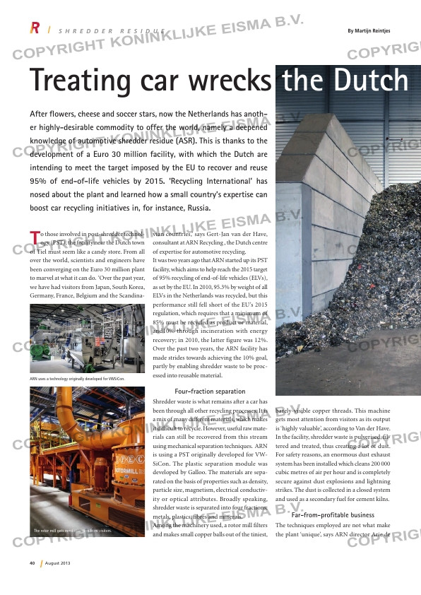 To those involved in post-shredder technol-ogy (PST), the facility near the Dutch town