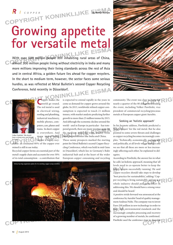hurdles, as was reflected at Metal Bulletin’s second Copper Recycling