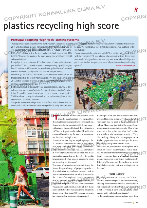 115 000 tonnes last year,’ according to Joao Letras of Portugal’s Ponto Verde