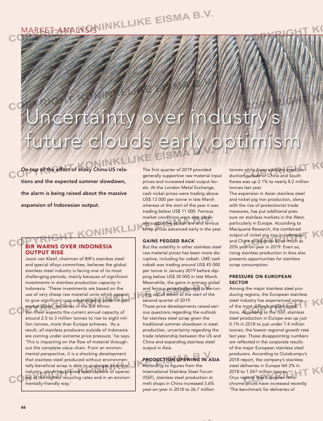 ...beneficial scrap is able to endanger an entire industry, which has proved itself capable of operat- ing at the highest recycling rates and in an environ- mentally-friendly way.’ The first quarter of 2019 provided generally supportive raw material in...