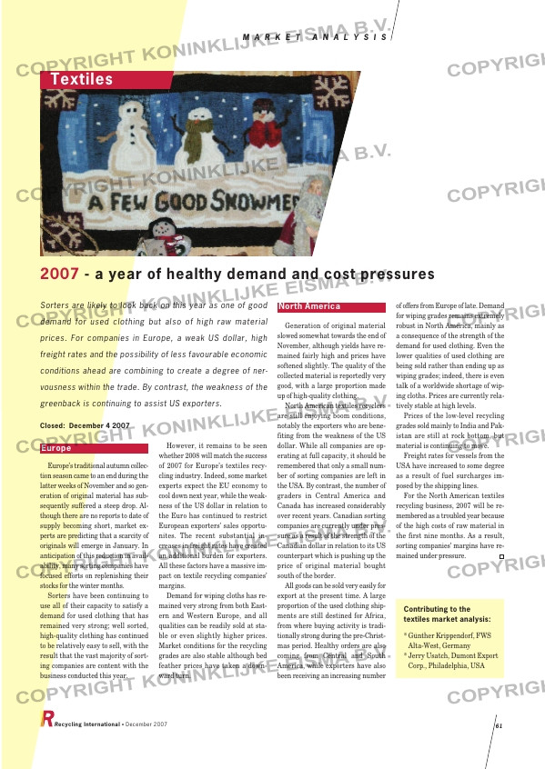 ...a steep drop. Al- though there are no reports to date of supply becoming short, market ex- perts are predicting that a scarcity of originals will emerge in January. In anticipation of this reduction in avail- ability, many sorting companies ha...