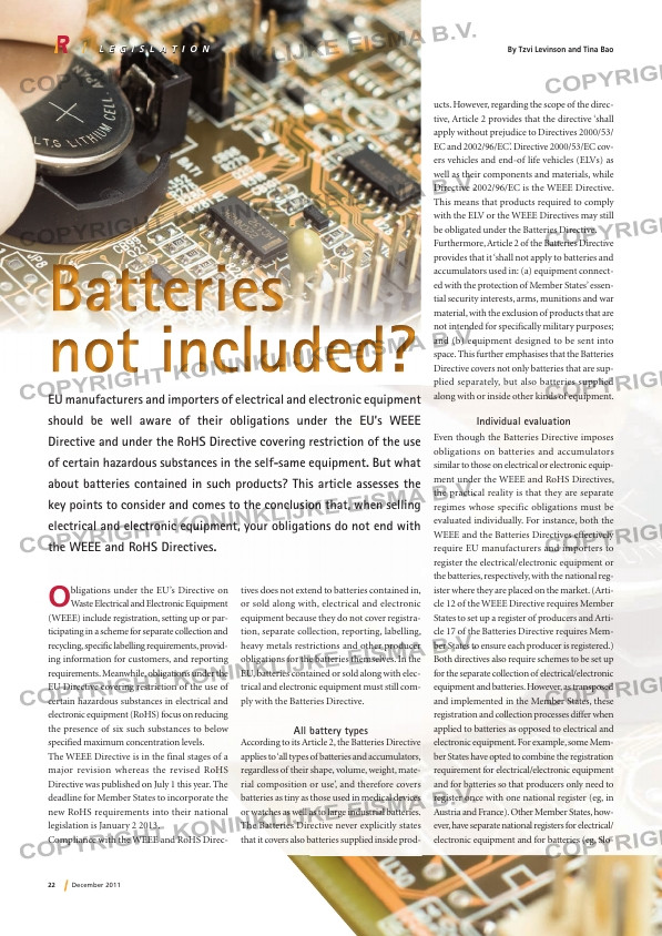 ... T I O N By Tzvi Levinson and Tina Bao Batteries not included? p22_WEEE-Battery Directive.indd 22 30-11-11 08:52 recycling rate...