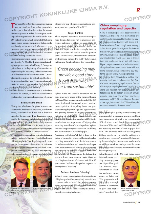...’Nordström: ‘The paper industry seems to have a bright future ahead.’ RI-10 Paper.indd 27 04-12-14 14:32 recycling rate...