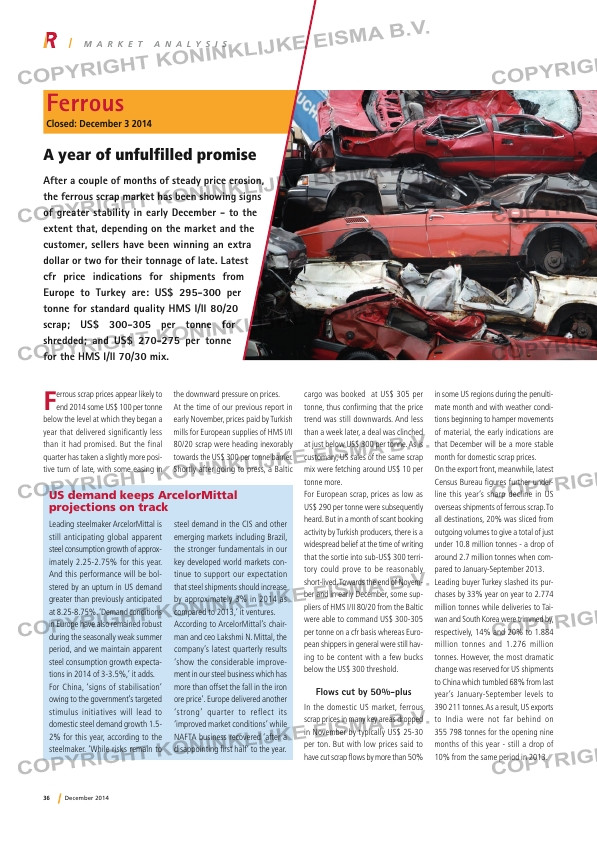...a month of scant booking activity by Turkish producers, there is a widespread belief at the time of writing that the sortie into sub-US$ 300 terri- tory could prove to be reasonably short-lived. Towards the end of Novem- ber and in early De...