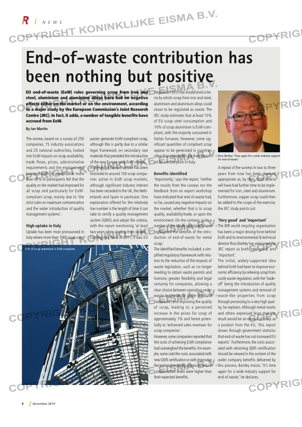 ...industry support for end-of-waste.’ 10% of scrap aluminium is EoW-compliant. RI-10 NEWS.indd 8 04-12-14 14:40 recycling rate...