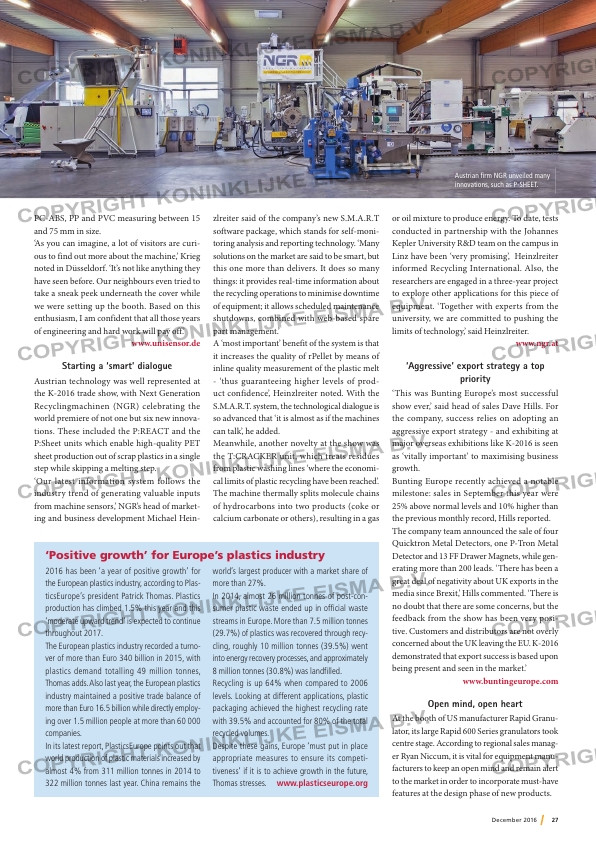 Thomas adds. Also last year, the European plastics