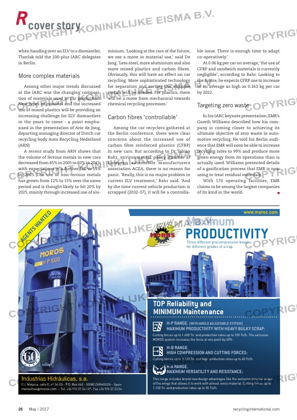 ...bjective of zero waste in auto- motive recycling. He told his Berlin audi- ence that EMR will soon be able to increase recycling rates to 99% and produce more green energy from its operations than is actually used. Williams presented details of a gas...
