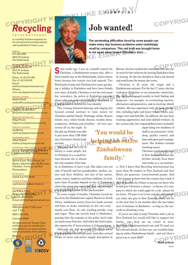 ...tina it is a small for- tune because she is almost the only member of her fam- ily in Zimbabwe to have a job. She takes care not only of herself and her grandmother, mother, sis- ters and their children, but also of her uncles, aunts, nieces, ...