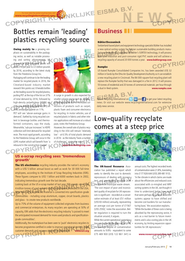 news. Or visit our website www.recyclinginternational.com for extensive