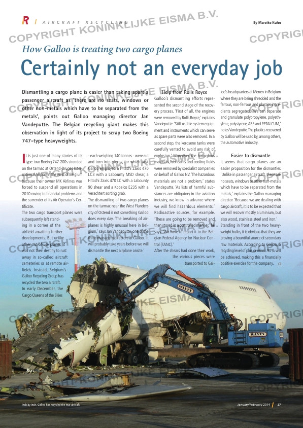 ...27January/February 2014 Certainly not an everyday job Dismantling a cargo plane is easier than taking apart a passenger aircraft as ‘there are no seats, windows or other non-metals which ...
