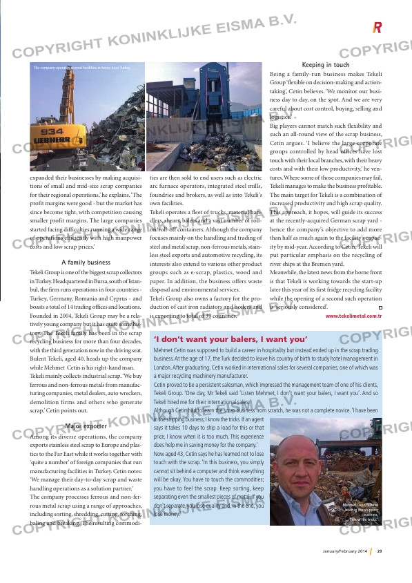 ...making and action- taking’, Cetin believes. ‘We monitor our busi- ness day to day, on the spot. And we are very careful about cost control, buying, selling and logistics.’ Big players cannot match such flexibility and such an a...
