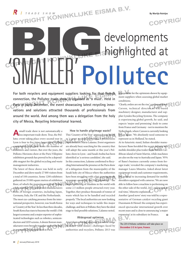 ...gation from the holy city of Mecca, Recycling International learned. RI-1-2014-PollutecX.indd 30 29-01-14 15:11 car...