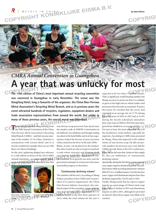 Metal Association’s Recycling Metal Branch, and as in previous years the