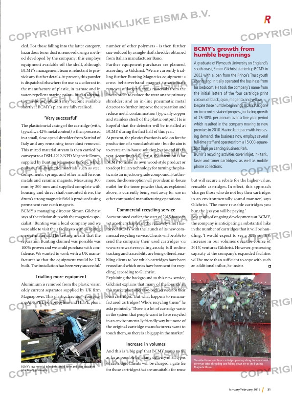 BCMY’s raw material infeed: discarded toner and laser cartridges