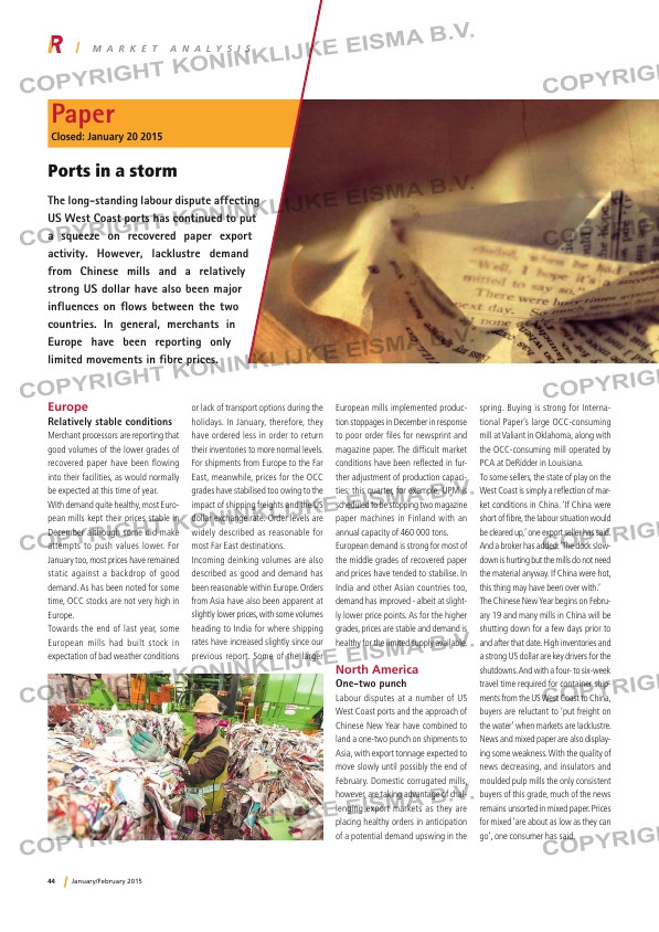 ...creasing, and insulators and moulded pulp mills the only consistent buyers of this grade, much of the news remains unsorted in mixed paper. Prices for mixed ‘are about as low as they can go’, one consumer has said. RI1_Analysis Paper&...