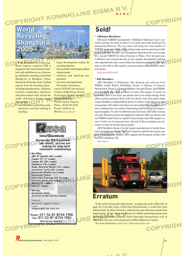...tingham-based firm has won an order for a second TARDIS for Alcoa Swansea in Wales. Over the past year, J McIntyre has invested heavily in new product development and has also expanded into other areas within the aluminium industry. The com- pan...
